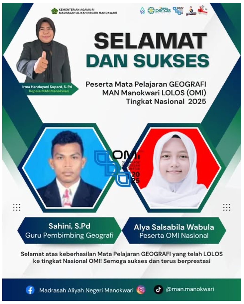 Prestasi Membanggakan! Peserta OMI 2025 dari MAN Manokwari Mata Pelajaran Geografi Melaju ke Tingkat Nasional